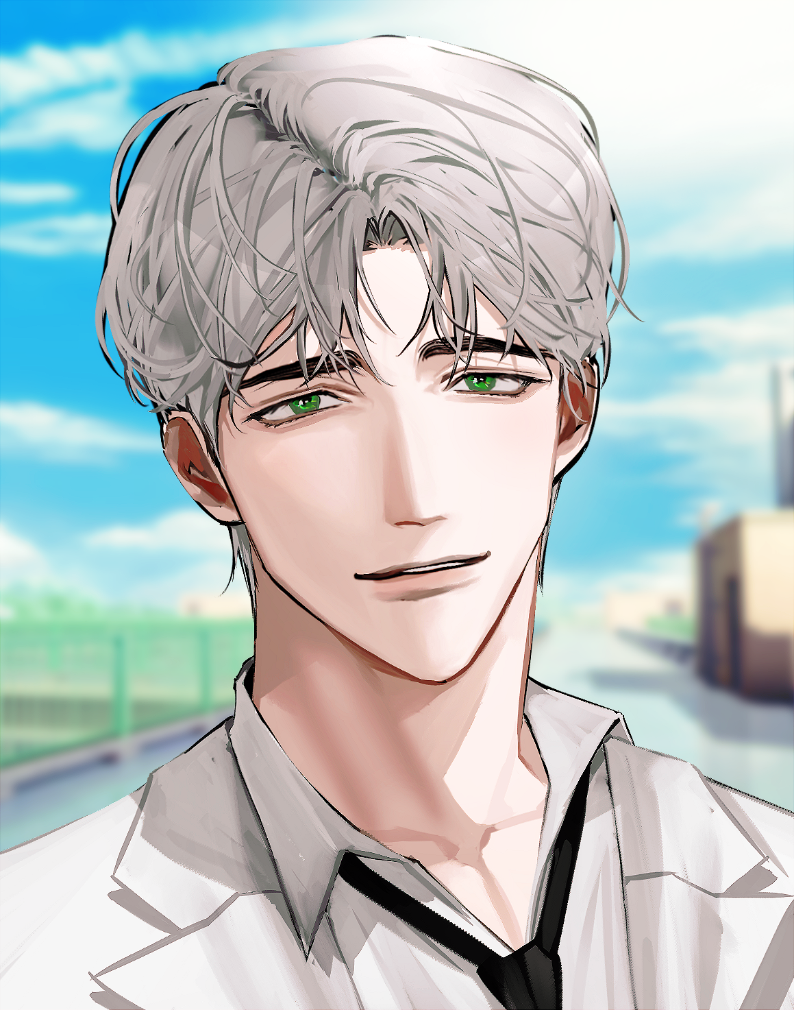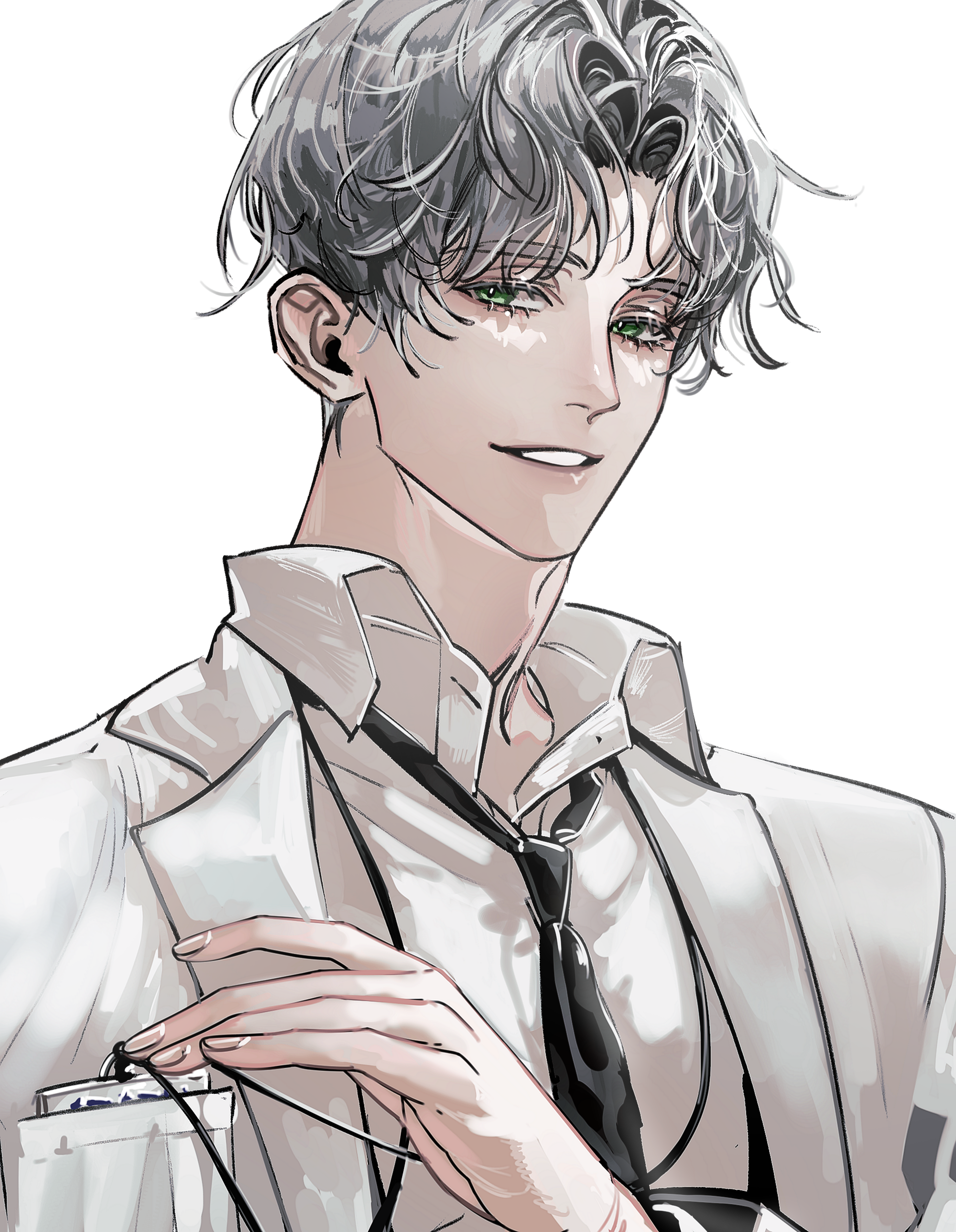셔츠는 위에 풀려있는 느낌으로 넥타이는 검정색 의사가운